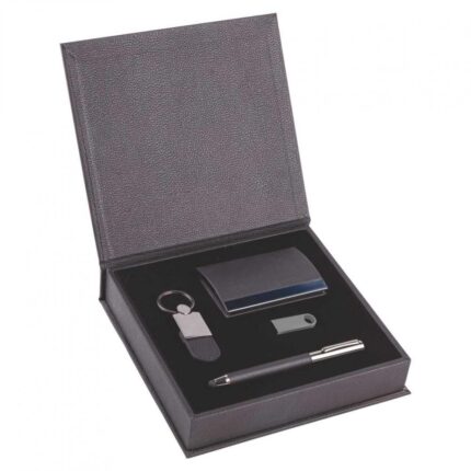 Kişiye Özel Deri Kutulu Defter & Metal Roller Kalem & Anahtarlık & USB Bellek Hediye Seti